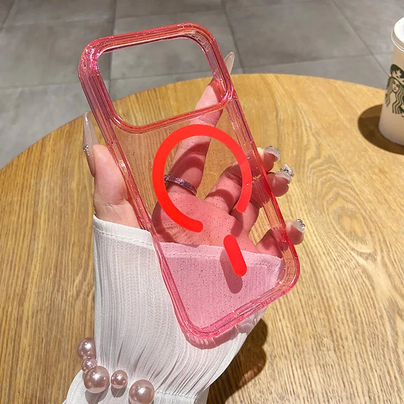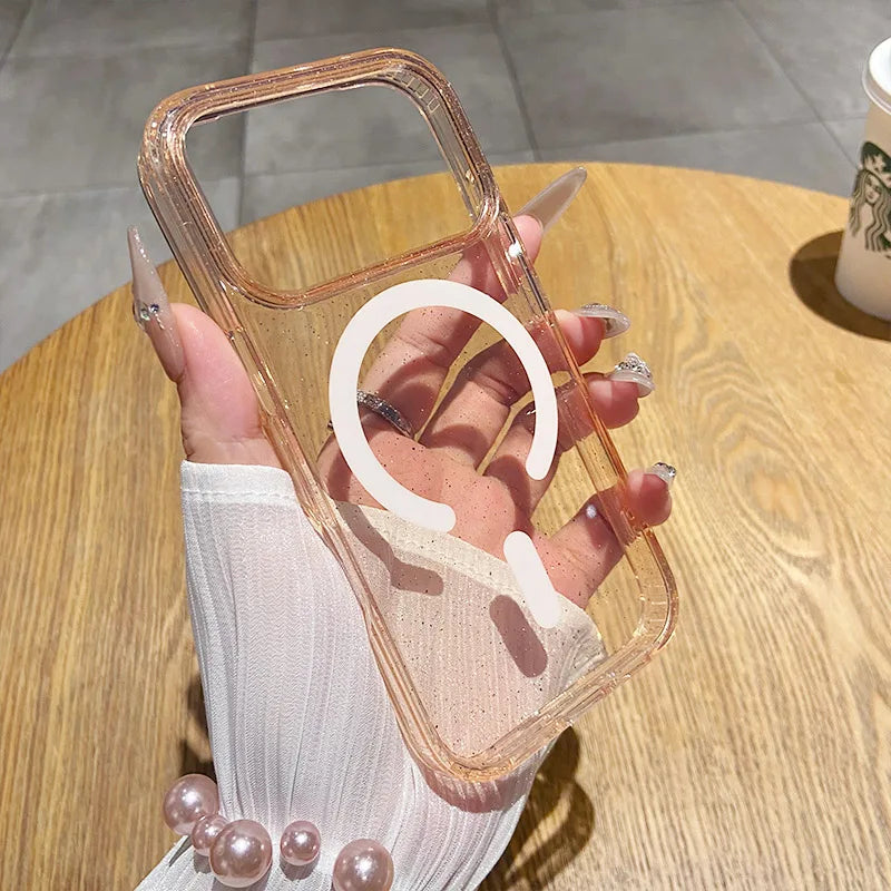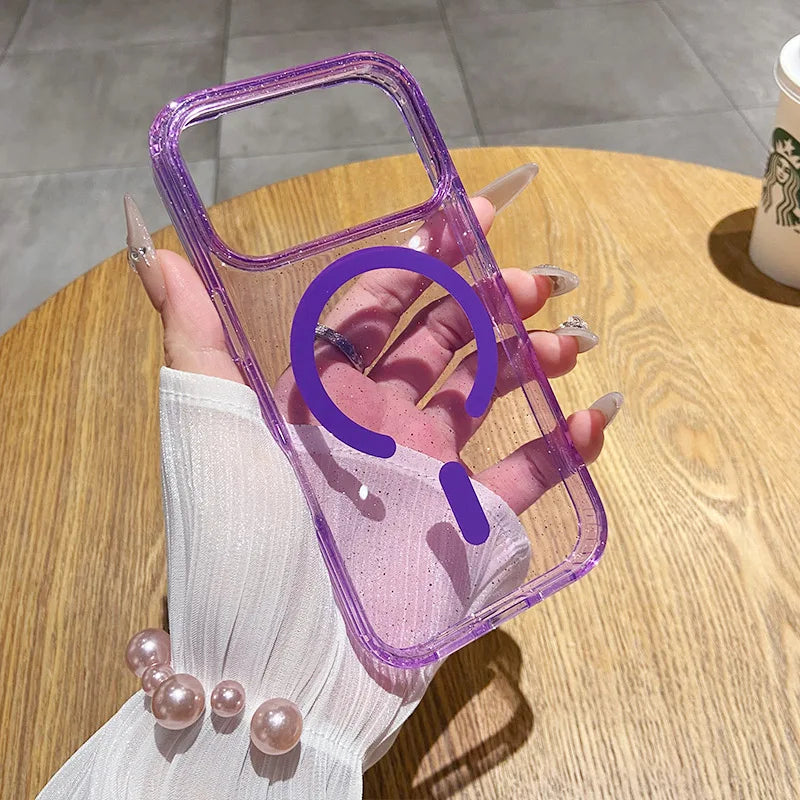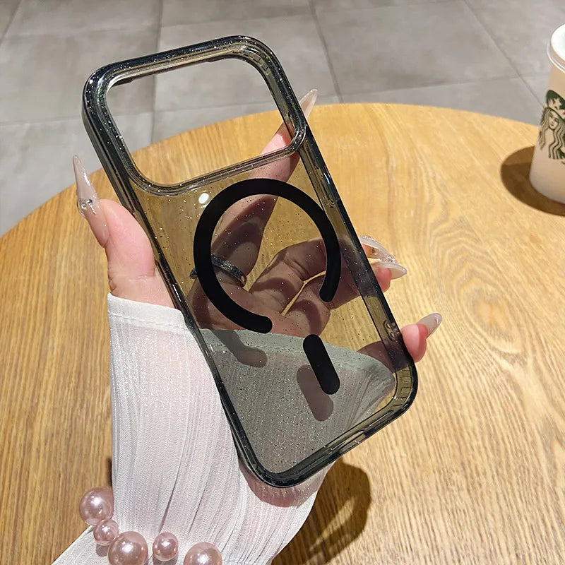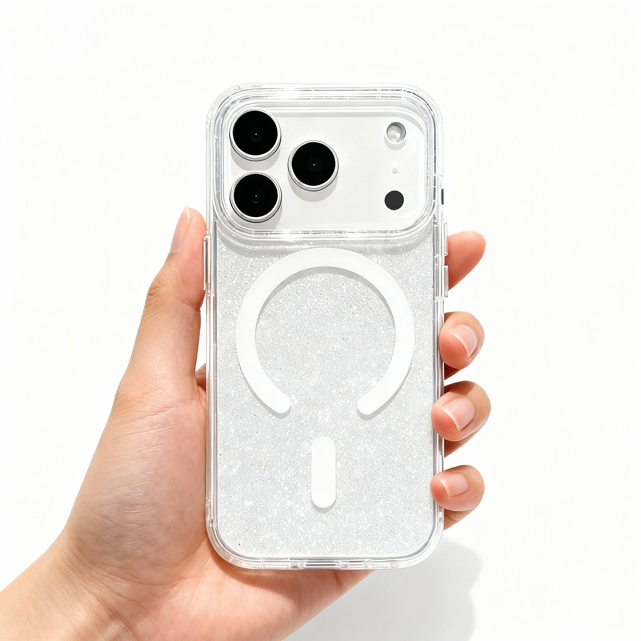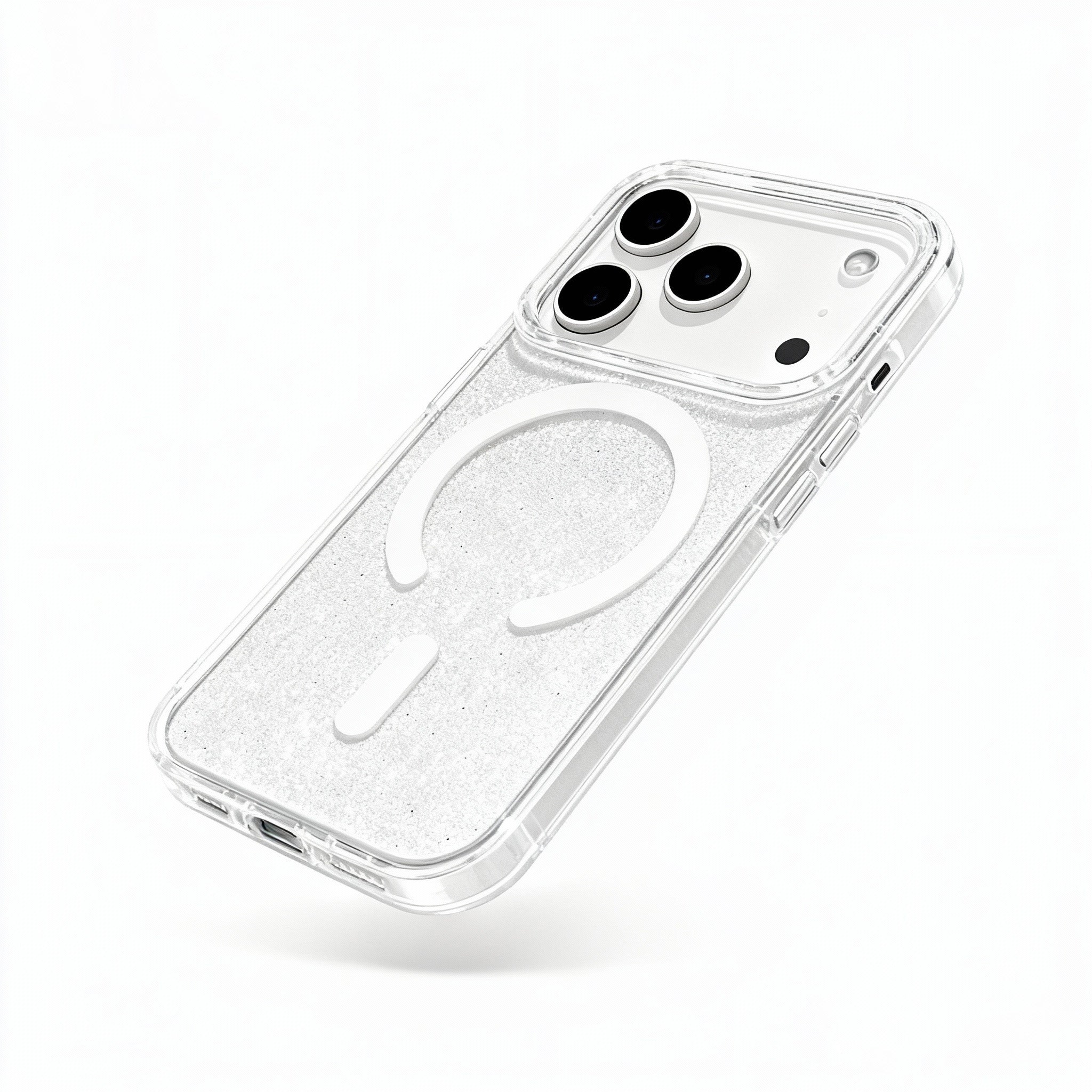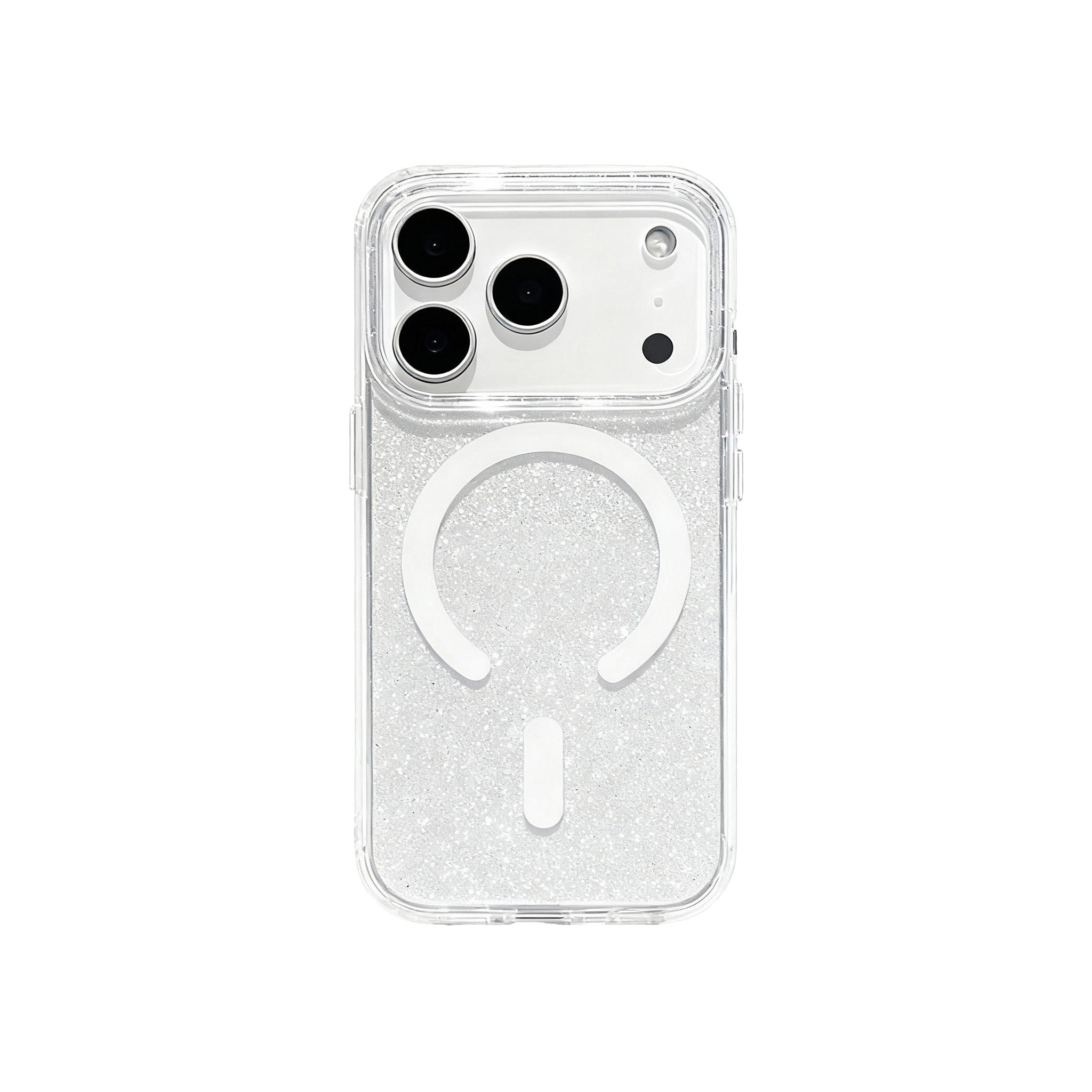Add a touch of everyday glamour to your device with the Wagmade Crystal Glitter Magnetic Case. This stunning case features thousands of fine, embedded silver sparkles that catch the light from every angle, turning your iPhone into a shimmering statement piece. The transparent base allows your phone's original color to peek through, creating a unique, starry-night effect.